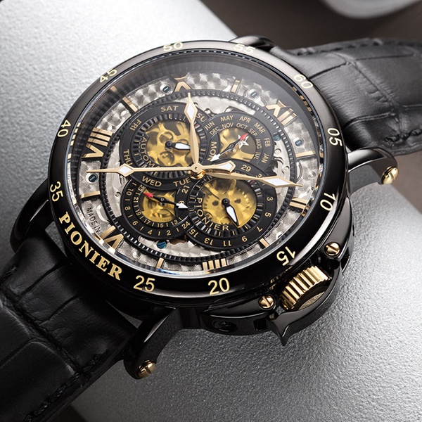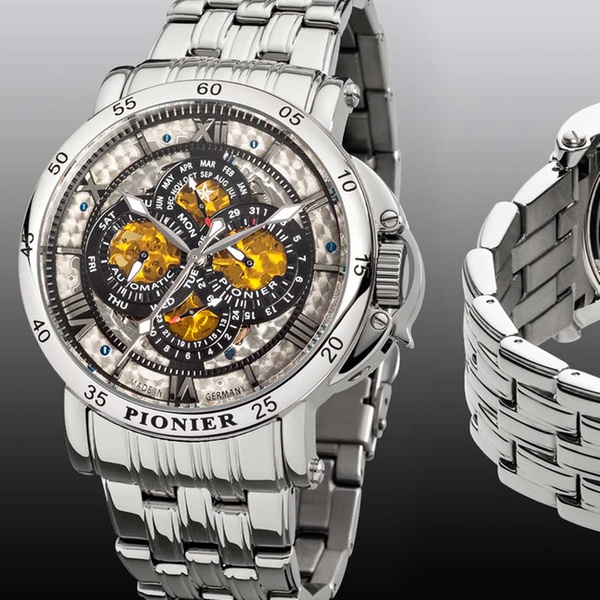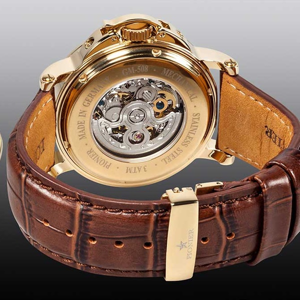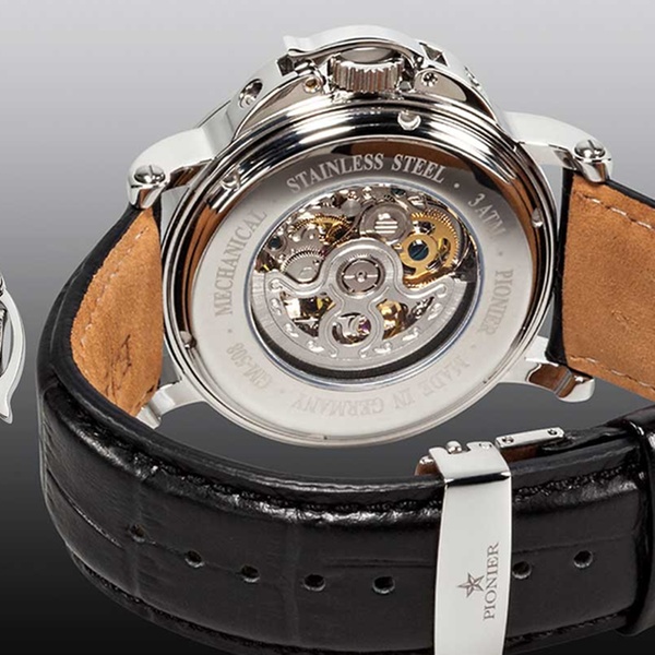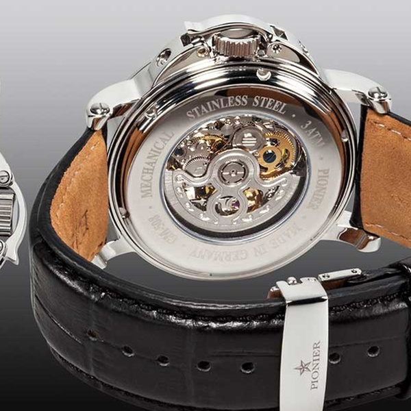 Made in Germany, this stylish watch boasts a hardened mineral glass, stainless steel case and an Italian leather strap