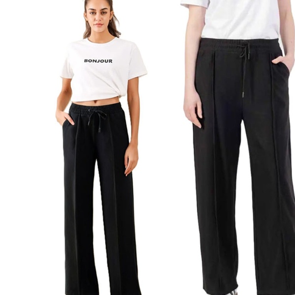 Today's Groupon offers Plain and Seam Front Wide Leg Trousers, distributed by Want Clothing Ltd.