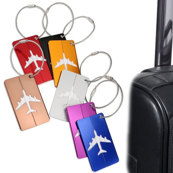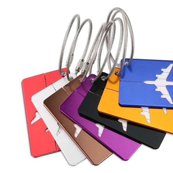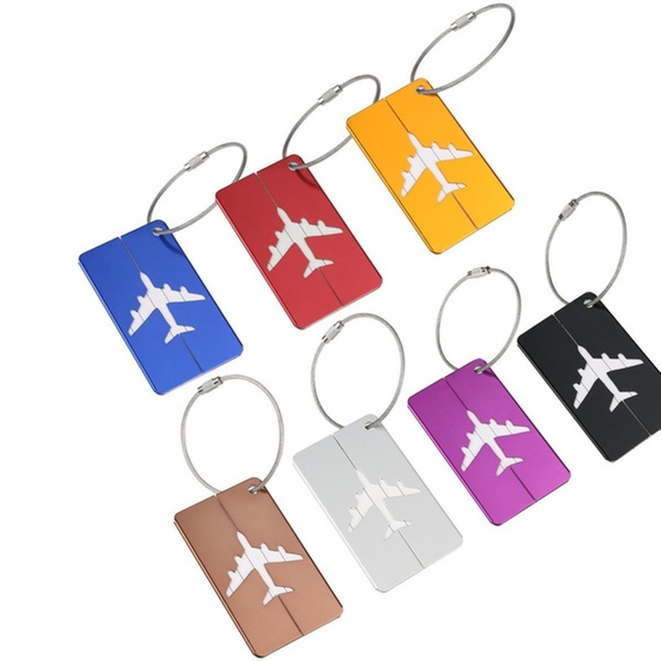 Personalise luggage with these plane luggage tags, featuring space for the owner’s name and address details