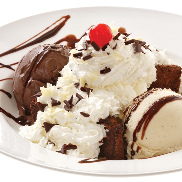 - Desserts available include: ice cream or sorbet | double chocolate chip brownie | cheesecake