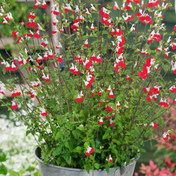 Featuring sage-scented foliage, this plant flowers all summer long and is ideal near doorways