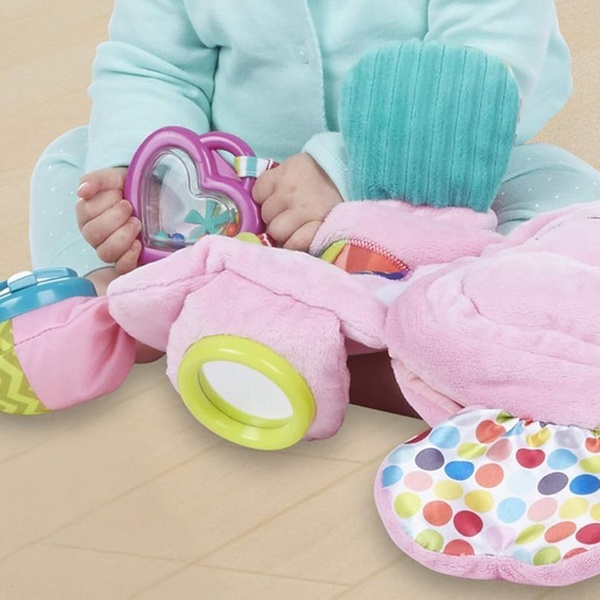 This plush elephant offers sensory engagement with crinkle ears, a rattle, and a mirror, perfect for delightful tummy time play