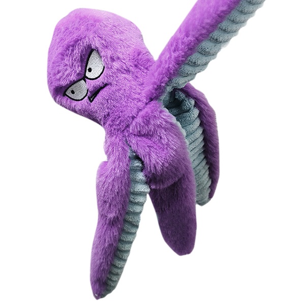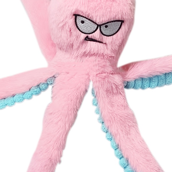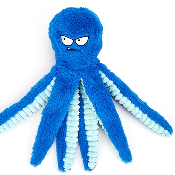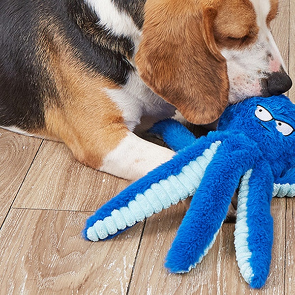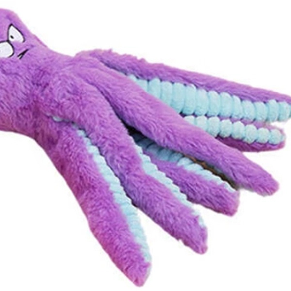 A lasting plush octopus toy designed with reinforced seams, a squeaker and crinkle textures to keep dogs entertained. Soft on teeth and gums, it helps relieve anxiety and boredom while preventing destructive behaviour