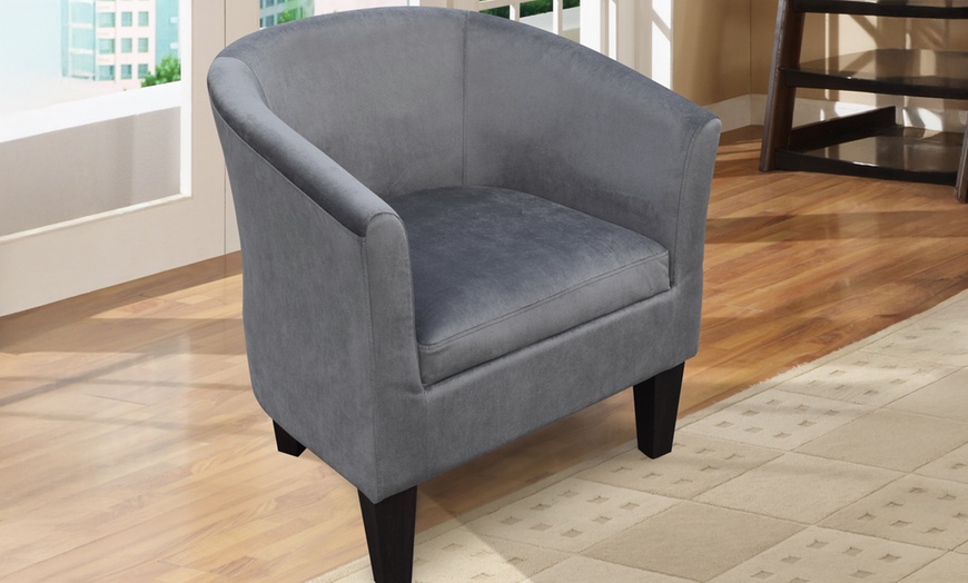 Today's Groupon offers Plush Velvet Tub Chair, distributed by Sleep Softly Ltd.