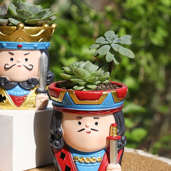 Showcasing vibrant playing card characters, this whimsical pot brings a playful charm to any plant display or decor moment