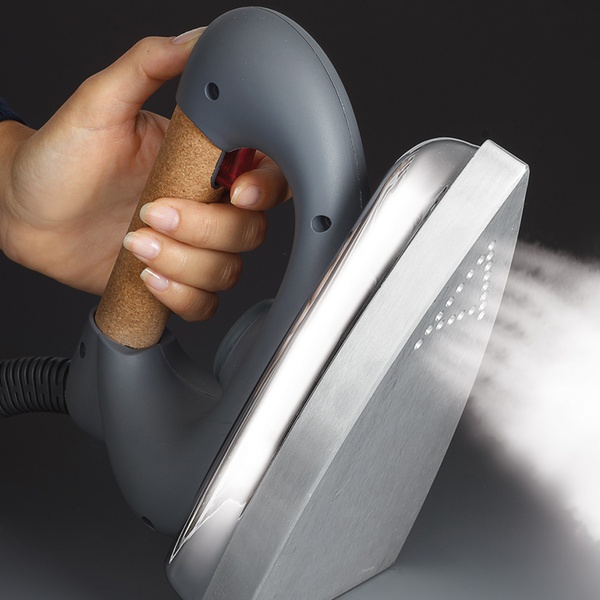 Ideal for ironing even several layers of fabric at once or tablecloths and sheets, this iron features a convenient cork handle