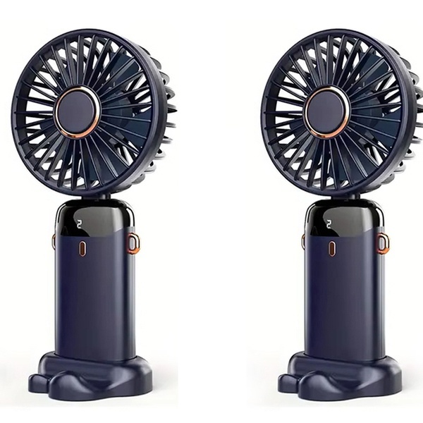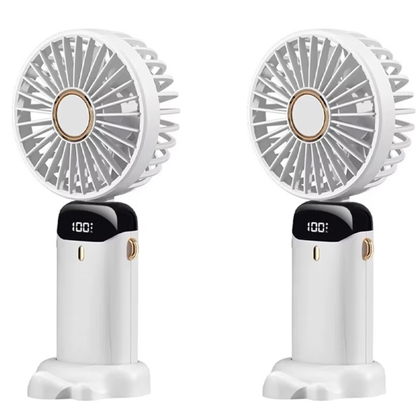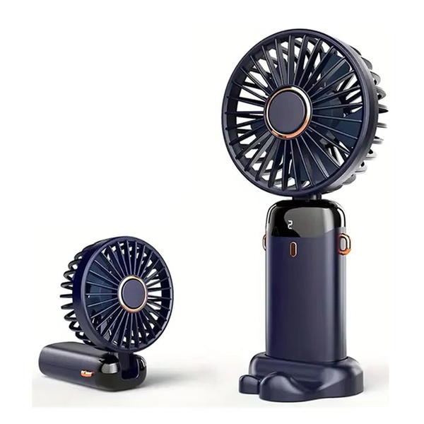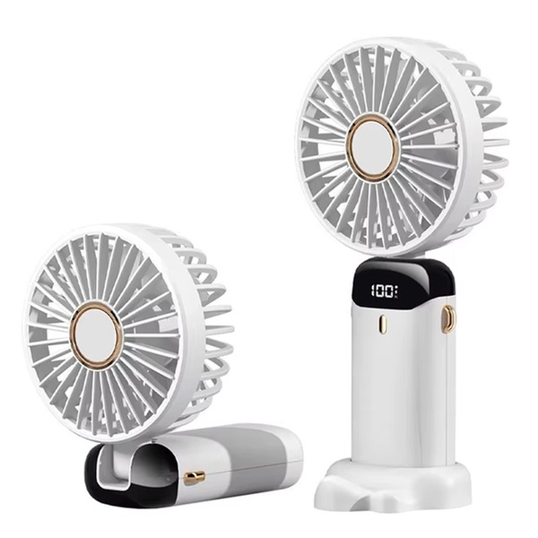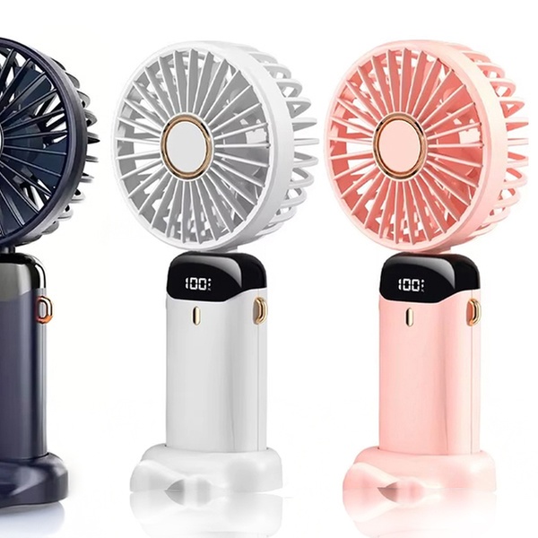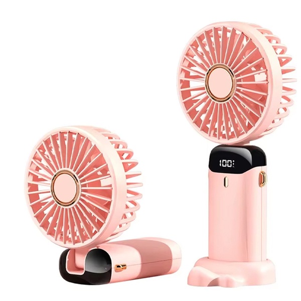 This portable USB handheld fan features a phone holder base, allowing users to enjoy a refreshing breeze while watching their favourite videos