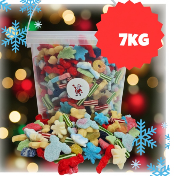 7kg of Mixed Christmas Sweets - Choose from an assortment of classic Christmas candies like chewy gummies, chocolates, and festive treats.