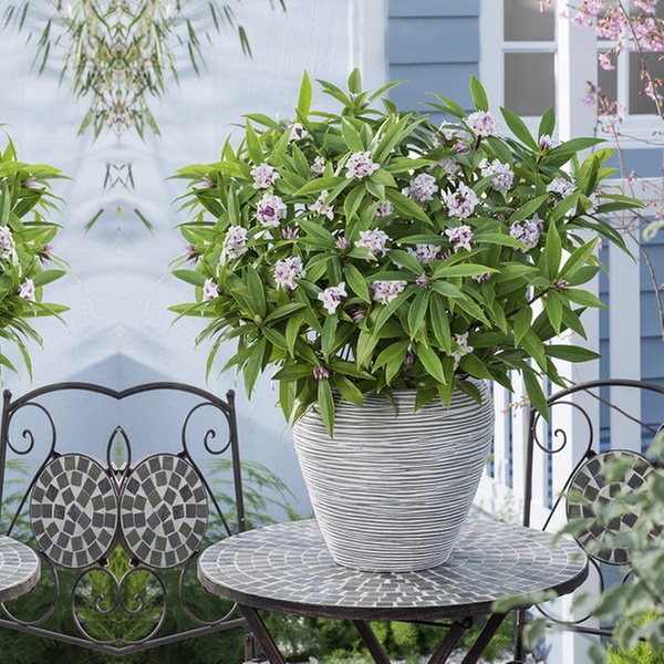 Constantly blooming from April to October, this fragrant Daphne plant will fill the garden with delightful scents all season long