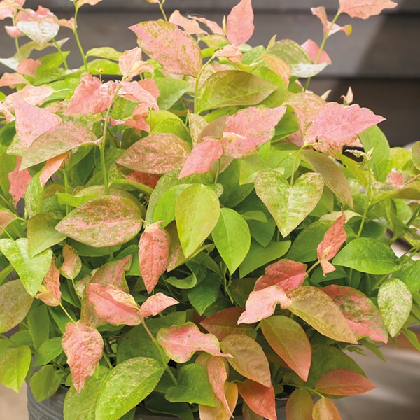 - Unique mottled pink foliage transitions to green with cream marbling in autumn