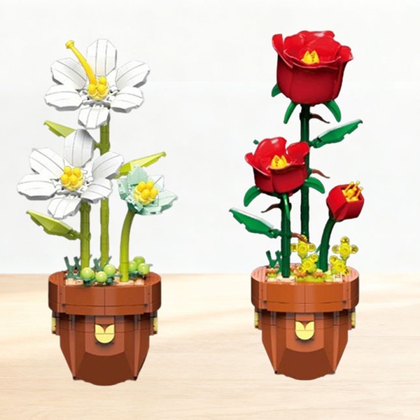 - Creative floral building kit – Each flower model includes detailed block components for assembling realistic potted plants.