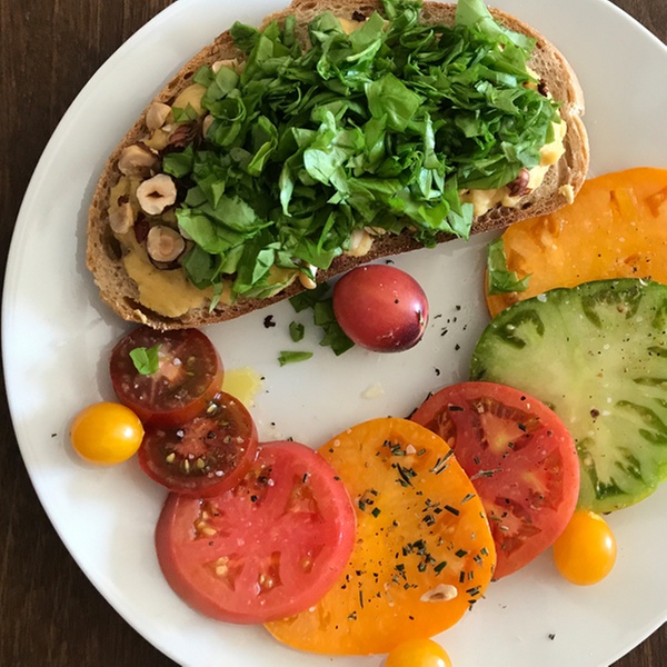 - tomato ‘Ananas’, an heirloom variety producing large, slightly flattened beefsteak tomatoes with distinctive yellow and orange streaked skins