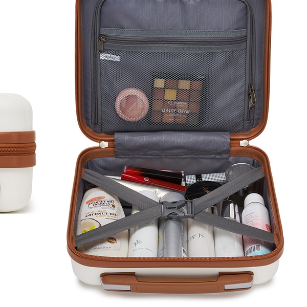 - Vanity case included for essentials such as phone, tissue paper, and cards