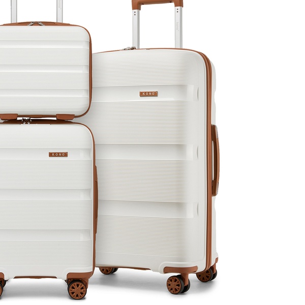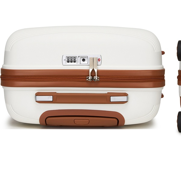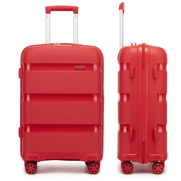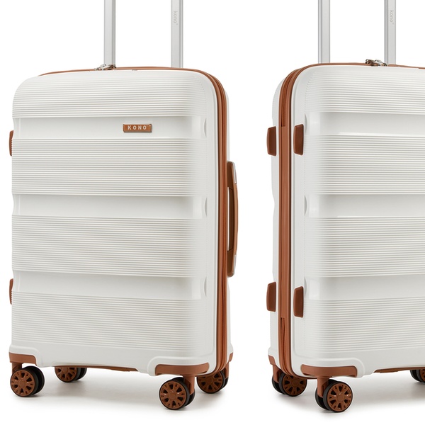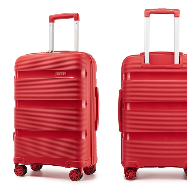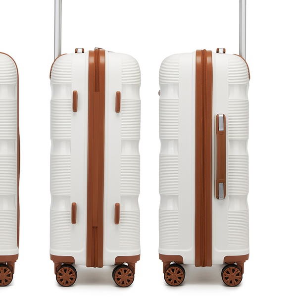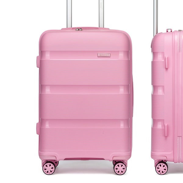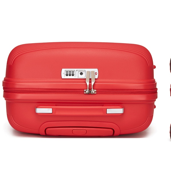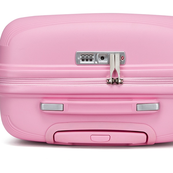 Lightweight and impact-resistant PP suitcase with TSA lock, smooth spinner wheels, adjustable handles, spacious compartments, and modern striped design