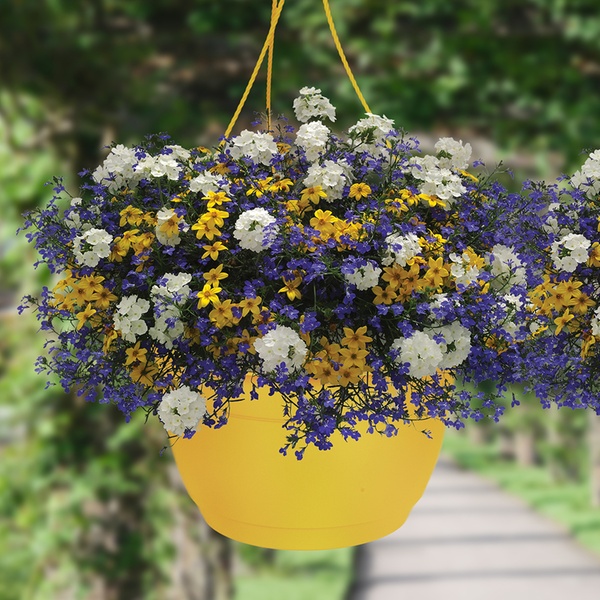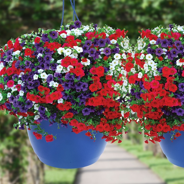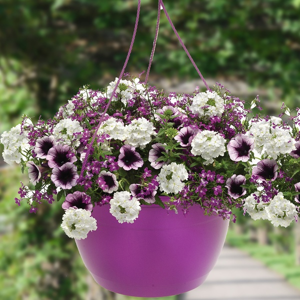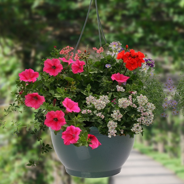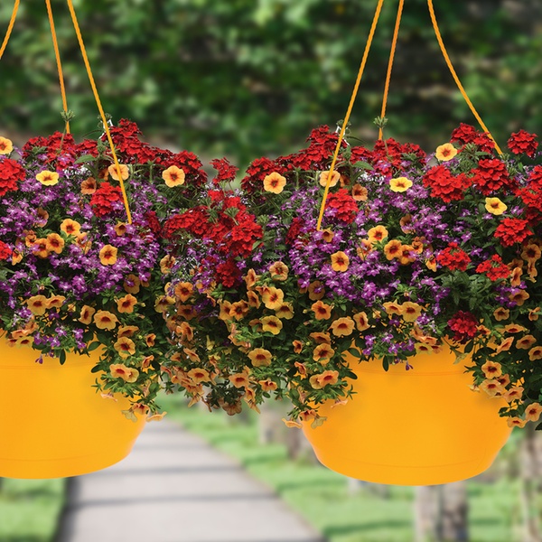 These baskets feature ready-to-use plants in colourful baskets; can be used year after year
