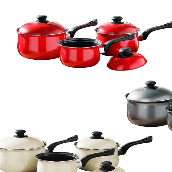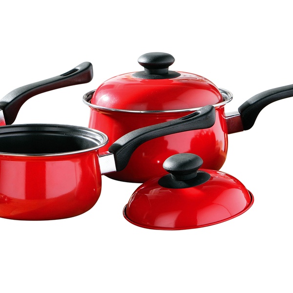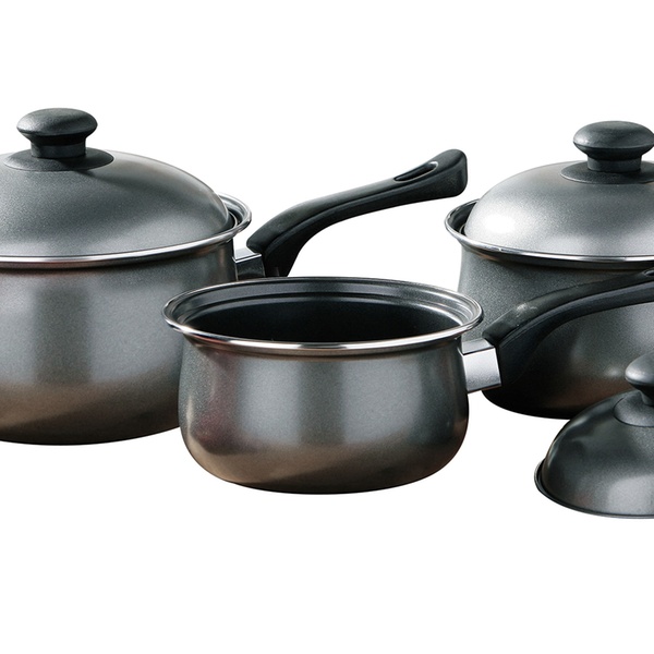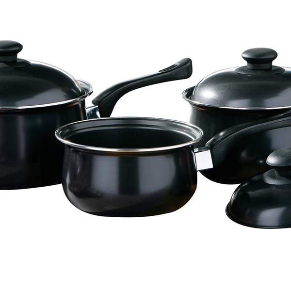 Featuring three different-sized saucepans with lids, this durable carbon steel set can cover all cooking requirements