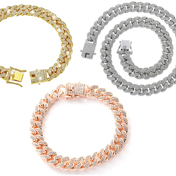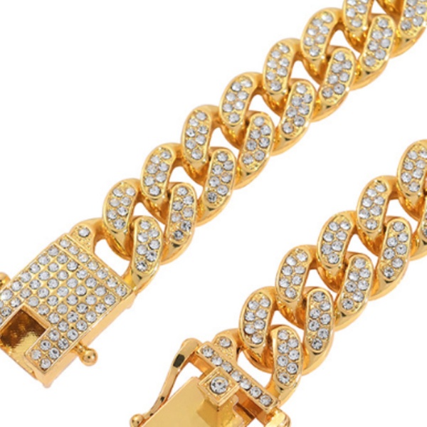 • Premium design: luxurious Cuban link chain dog collar with a sparkling rhinestone diamond mosaic pattern, available in gold, silver, or rose gold finishes