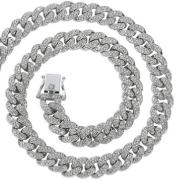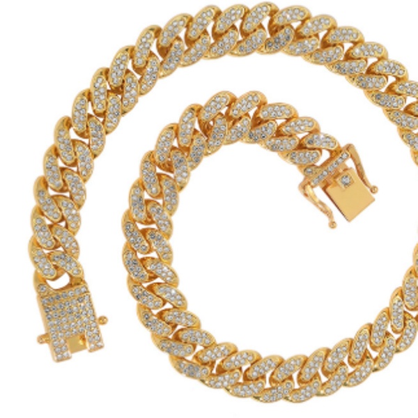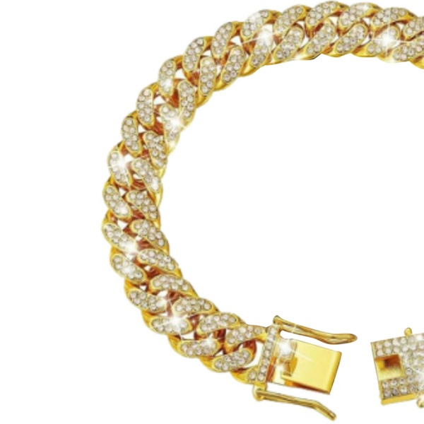Premium Cuban Link Dog Collar; Rhinestone Design