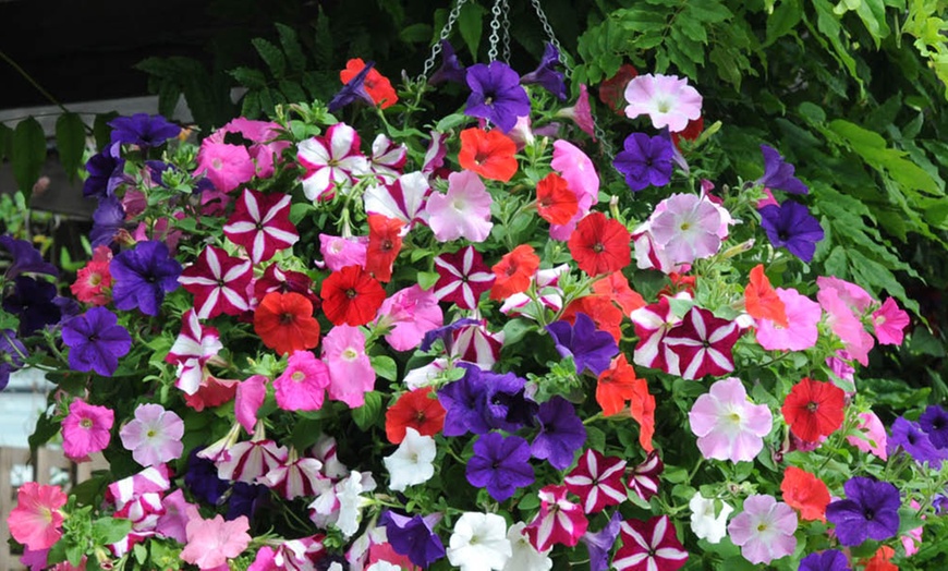 Today's Groupon offers Pack of Two Preplanted Petunia 'Wave' Mix Rattan Hanging Baskets, distributed by You Garden Limited.
