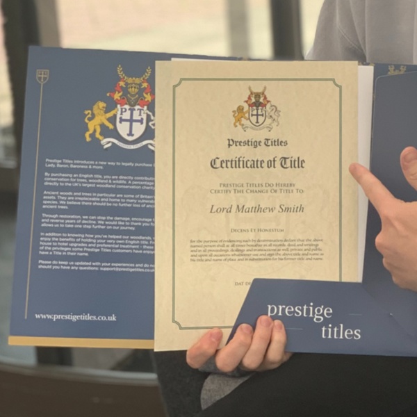 Prestige Titles are offering non-seated English titles such as Lord, Lady, Baron, Baroness & more. Prestige Titles takes care of all the legalities and formalities involved in assigning your new title to you./ppIt's easy to buy an English Title either for yourself, your partner or as a unique and unusual gift./pp/pp/pp/pp/p