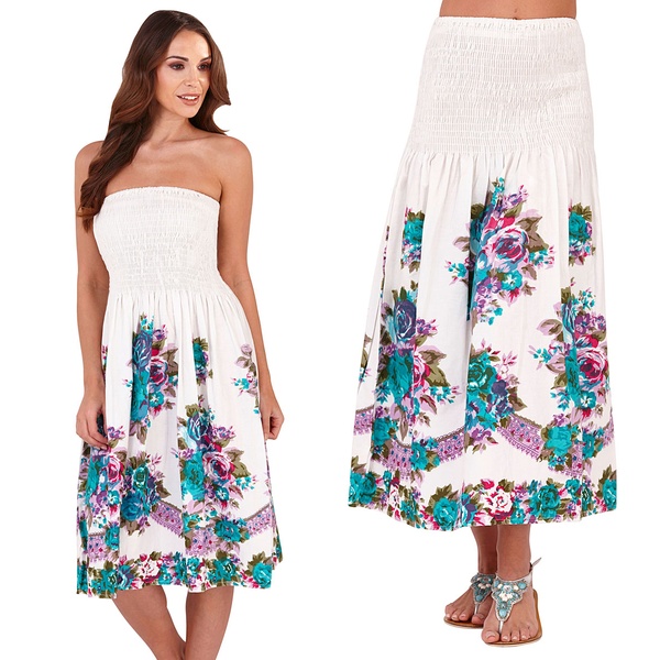 - Can be worn as a strapless dress, skirt or halter neck dress
