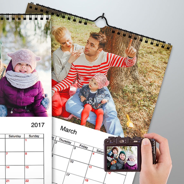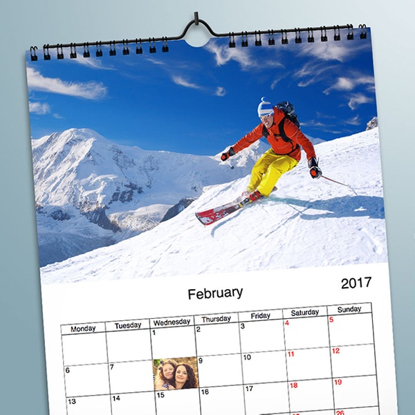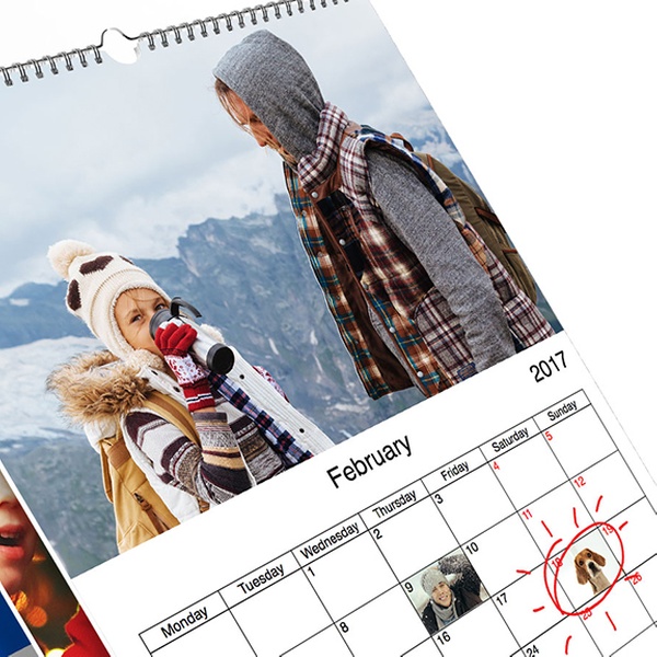 This A4-sized, top-folding portrait calendar features at least 13 images of choice, uploaded and arranged through the easy-to-use website