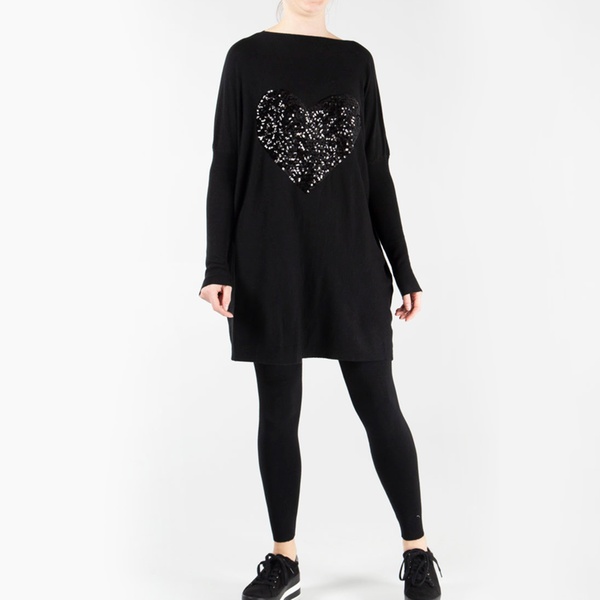 Ideal for everyday wear, this set includes oversized long-sleeved top with large sequin heart on the front and matching leggings