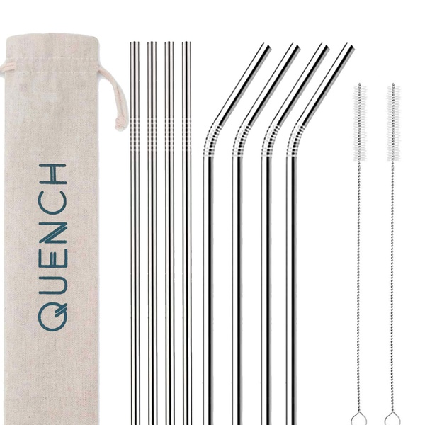 Ideal for drinking drinks or juice, these Quench stainless steel reusable straws are BPA-free and come with a carry pouch