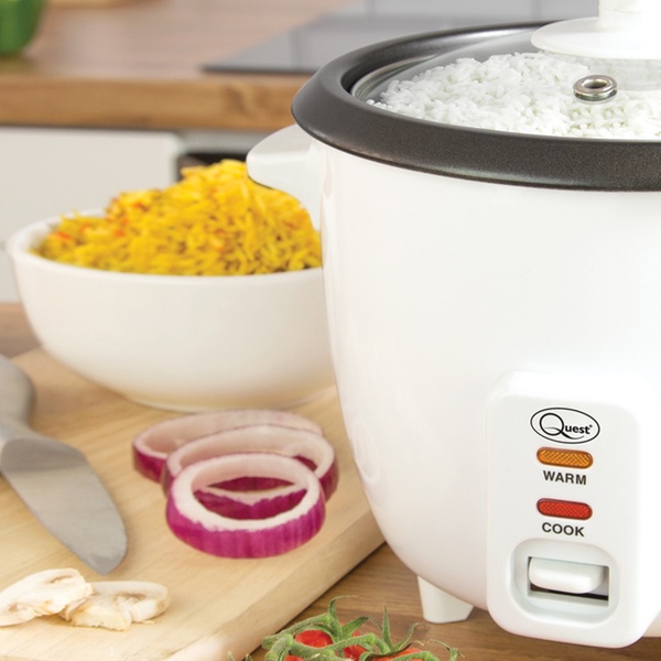 Designed to help cook rice fast and effortlessly, this rice cooker from Quest features a non-stick bowl and comes with a measuring cup