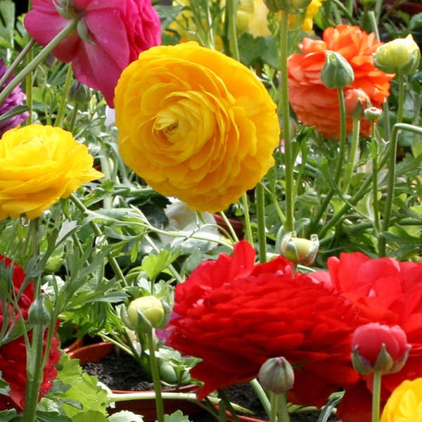 Brighten up any garden with this unique mix of Ranunculus bulbs, showcasing vibrant colours and stunning floral forms.