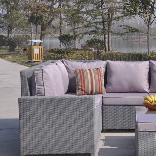 Add a touch of style and comfort to a garden with this handmade rattan-effect eight-seater corner sofa featuring waterproof cushions