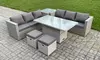 Crafted with durable rattan and plush cushions, this garden furniture set blends style and comfort for any outdoor gathering