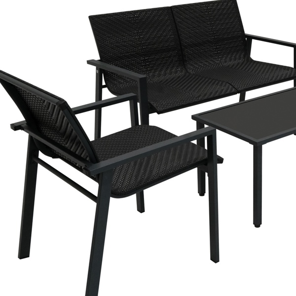 - Made from 100% machine-woven polyrattan with a heavy-duty steel frame