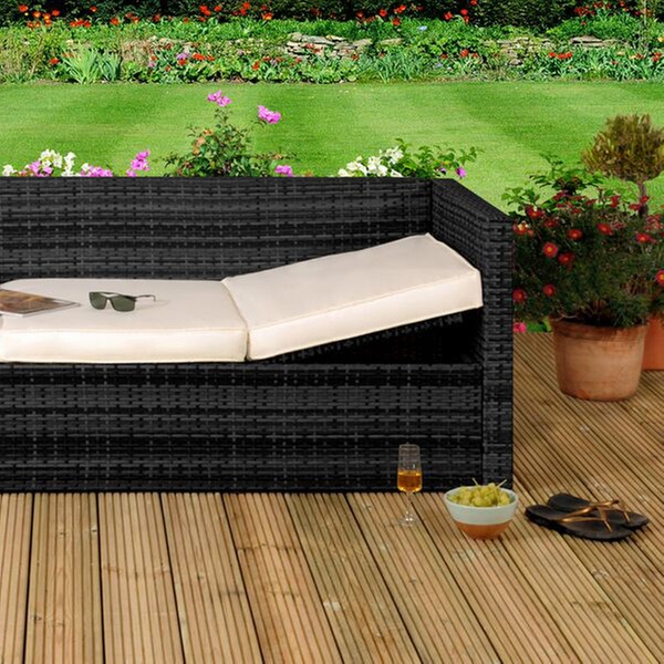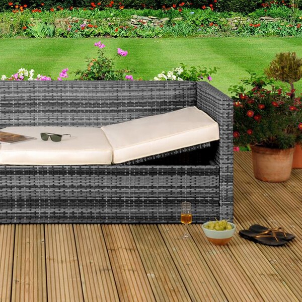 Rattan-Effect Sofa Lounger with Optional Cover