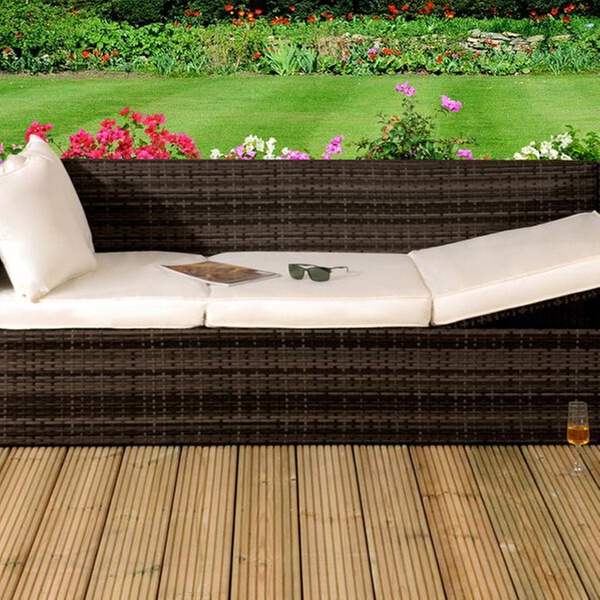 Ideal for dining and relaxing outside, this sofa lounger is made of water-resistant PE rattan and can be supplied with a cover