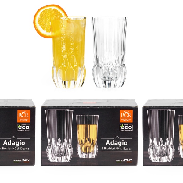 - Adagio crystal hi-ball tumblers glasses: 7.8cm (W) x 15cm (H) x 7.8cm (L)