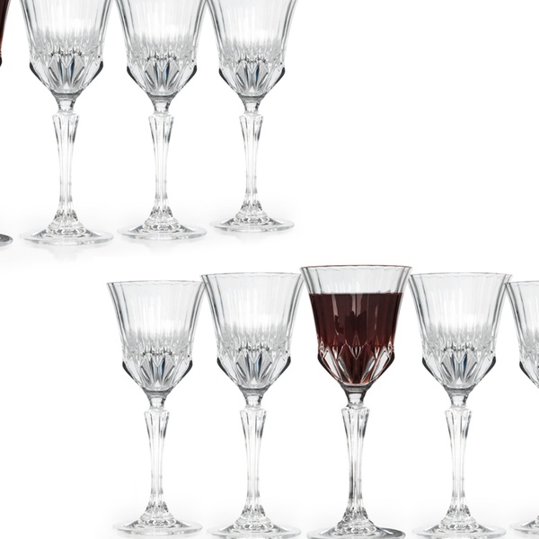 - COMBO-7268: 12 glasses in total - 6x wine glasses, 6x champagne glasses)