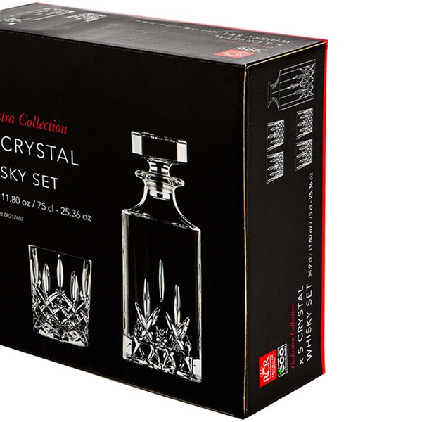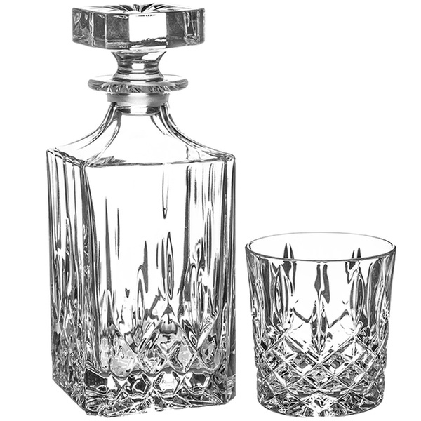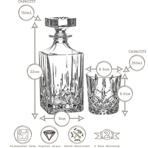 Comprising four tumblers and a matching decanter, this stylish set is made from quality crystal glass and can be ideal for a home collection