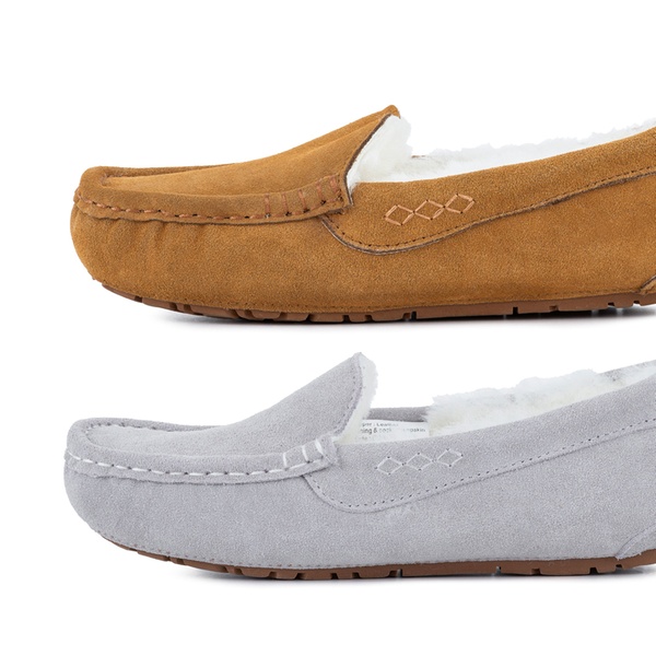 These sheepskin-lined slippers exude warmth and keep feet toasty in the cold winter months