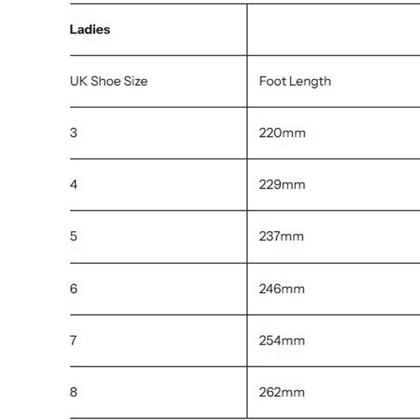 | Shoe Size | Foot Length |