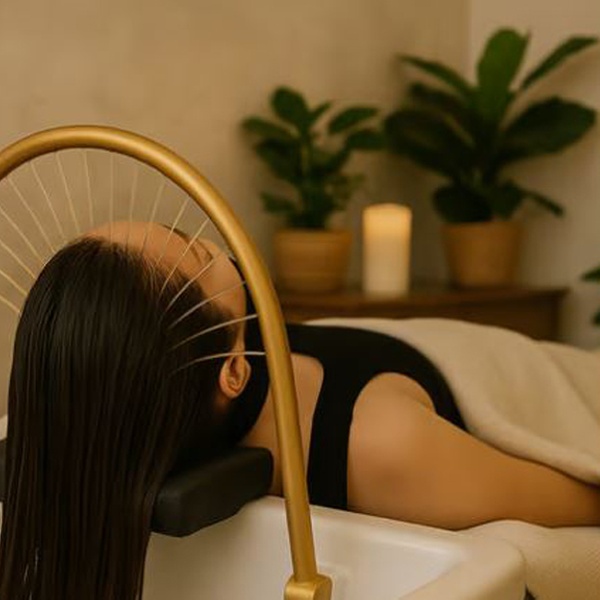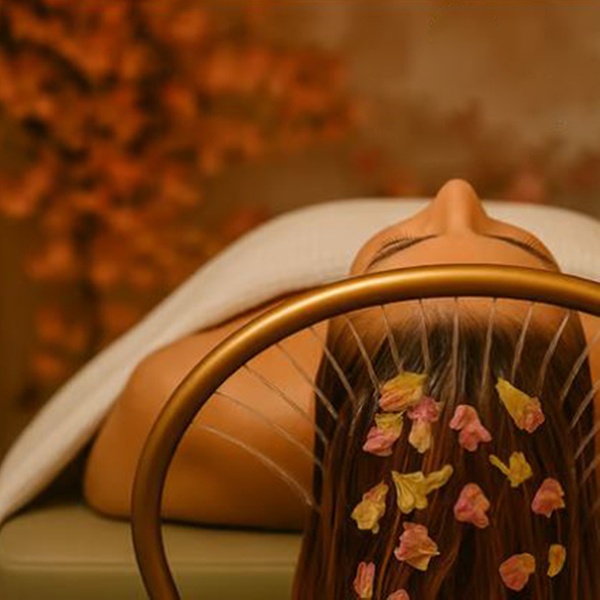 • Herbal tea-infused scalp massage