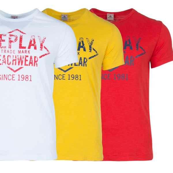 Crafted from textured cotton and available in a range of colours, these Replay Beachwear T-shirts make great summer casual wear