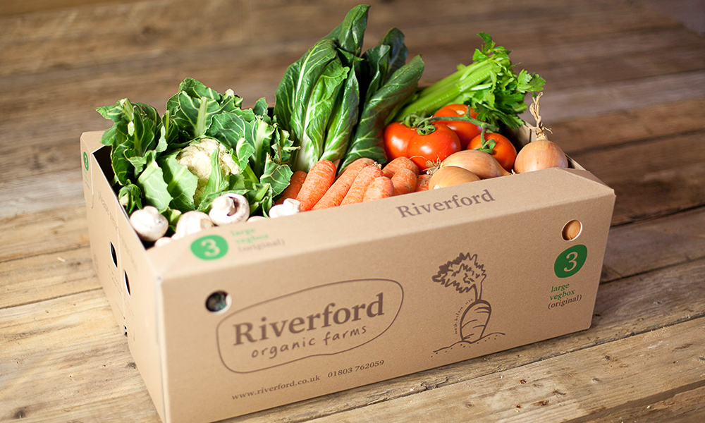 Riverford Organic Farms is an enterprise dedicated to making organic produce as widely and readily available as possible. A regular delivery service and an online shop send vegetables, meat and other food and drink items directly to customers' homes. The company sources produce from its own farms in Devon, Peterborough, Yorkshire and Hampshire. The Devon farm is also home to Riverford's Field Kitchen restaurant. The boxes are delivered from Home Farm in North Yorkshire.