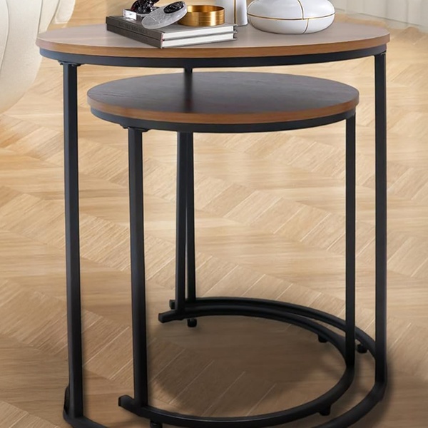 Today's Groupon offers Alivio Set of Two Round Metal Frame Coffee Tables with Wooden Top, distributed by Hirix International Ltd.