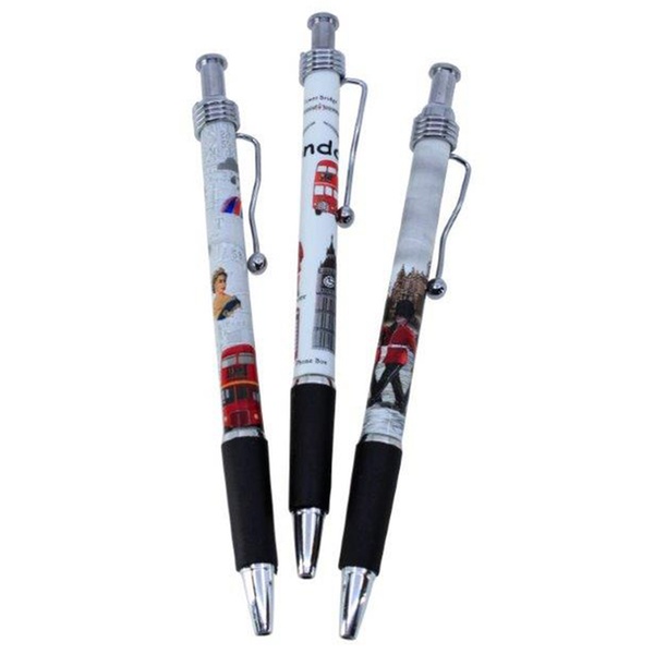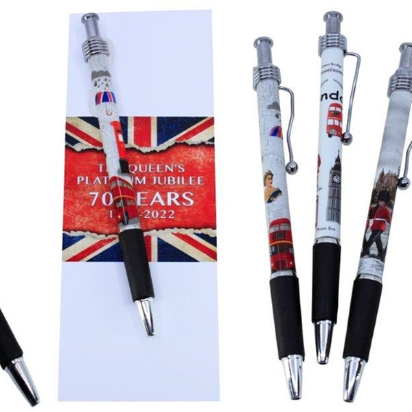 Celebrate the Queen's Platinum Jubilee with pack of three-ball pens featuring iconic London designs; Idea for souvenir and gift