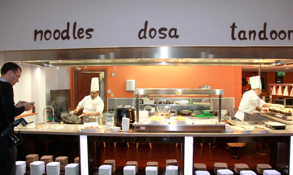 Parties of one, two or four can take a culinary journey around the world at Rupee World Buffet and Bar. Lunch or dinner sittings can involve freshly made naan bread and kebabs, pizzas and pastas, a salad bar, and a live cooking station with chefs sculpting noodle and stir fry creations.