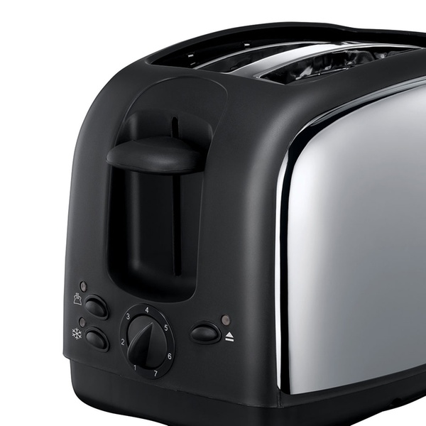 Featuring a 2-slice capacity and variable browning control, this toaster offers 7 settings and functions for frozen, reheat, and cancel and also has a removable crumb tray