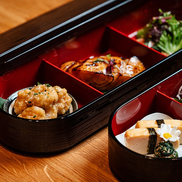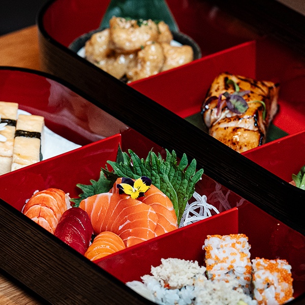 A beautifully crafted bento featuring a carefully curated selection of our finest sushi and sashimi
