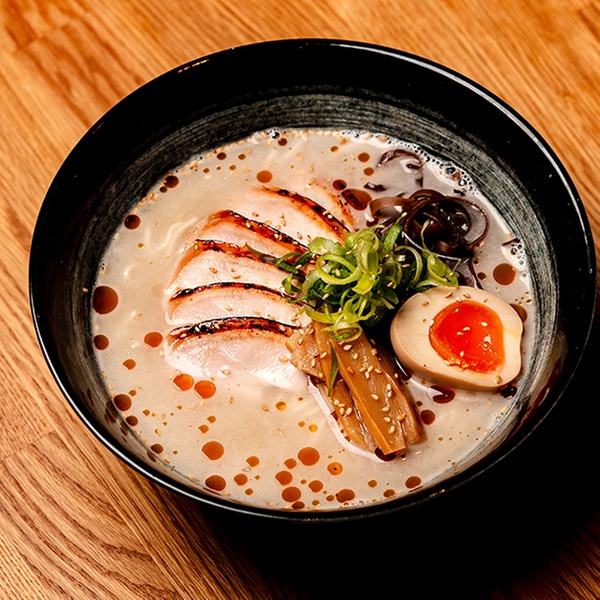 Jukusei Tori Ramen – Thick, creamy chicken broth with char siu pork and ramen egg.