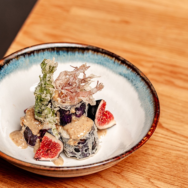 *Nasu Goma to Ichijiku - Fried Aubergine and Fig with Roasted Sesame Miso Sauce